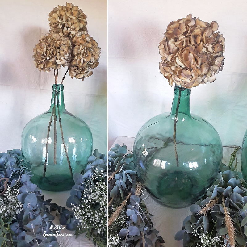 Les dames-Jeannes ne sont plus à présenter... Qui n'a jamais vu ces grosses bonbonnes en verre dont se servaient nos grands-parents pour y entreposer le vin dans la "Cave" . La poussière est souvent leur plus fidèle amie, car elles y sont entreposées de nombreuses années avant d'être retrouvées et détournées en bel objet de décoration. Les dames-Jeanne sont une tranche de vie, un bout d'histoire à elles seules. Avec des guirlandes lumineuses, en pied de lampe ou en vase pour nos plus beaux branchages, elles subliment en un tour de main n'importe quel espace... MEDL