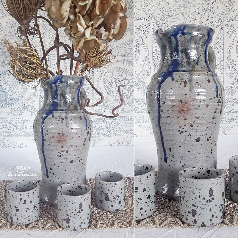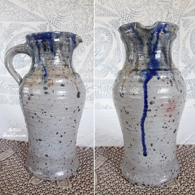 « Sublime pichet avec ses coulures d'émail indigo »