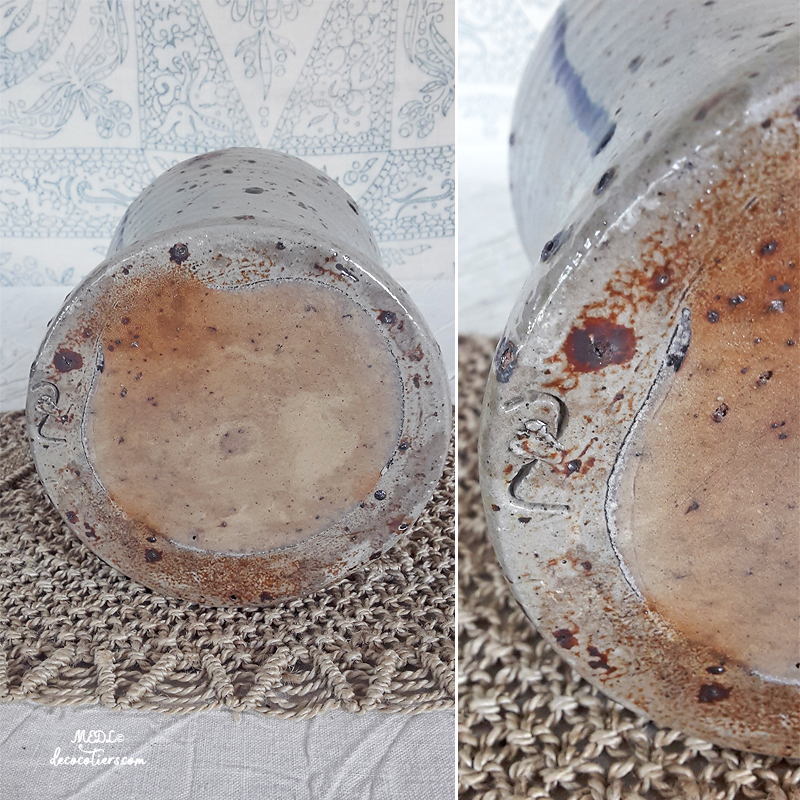 Grand pichet en grès de couleur gris taupe, aux expérimentations et interventions de peinture parfaitement maîtrisées, charme indéfinissable, à voir. Très lourd et cossue : 2500g. Estampillé : 2 à sa base (voir photos). H: 31cm L: 15cm